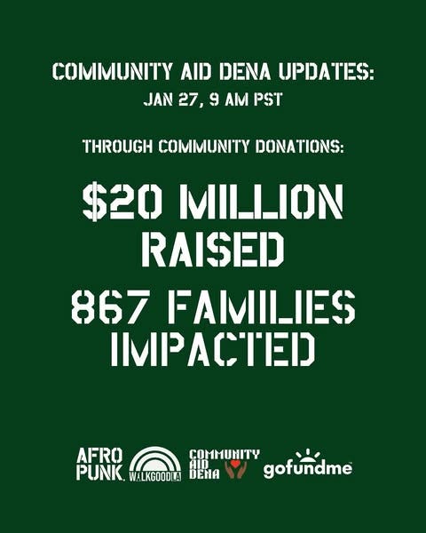 Another reason to not fall prey to the shock doctrine and look away for too long is the impending challenge of making sure everyone affected not only continues to get the help they need in the short-term but that they all receive the necessary assistance to rebuild their homes. According to a Reuters piece from January 12th, “Many Altadena residents said they were worried government resources would go to wealthier areas and that insurers might short-change those who cannot afford to contest denials of fire claims.” Everyone, whether or not they’re Paris Hilton, deserves the opportunity to put their lives back together after this tragedy.